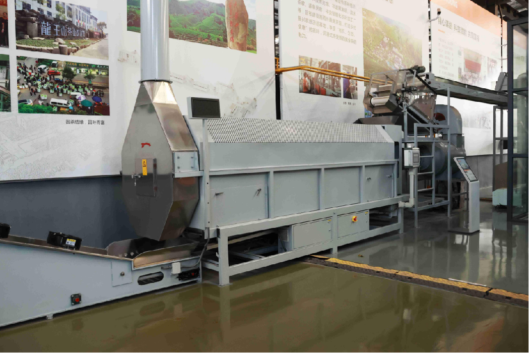 作業(yè)原理:機(jī)組運用自主發(fā)明的核心專利技術(shù),遵循“透氣不悶”的制茶原理,茶葉在筒體內(nèi)處于旋轉(zhuǎn)拋撒狀態(tài),熱風(fēng)充分接觸,受熱均勻,水份散發(fā)快、透氣性好,可連續(xù)完成茶葉的初脫水工藝流程。